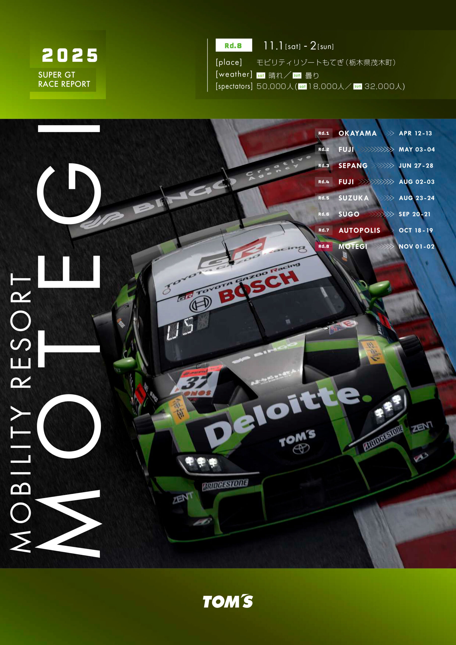2025年11月7日 / 最終更新日 : 2025年11月7日 toms_team 2025 SUPER GT 2025 : TGR TEAM Deloitte TOM’S 第8戦 レースレポート レースレポートはこちら