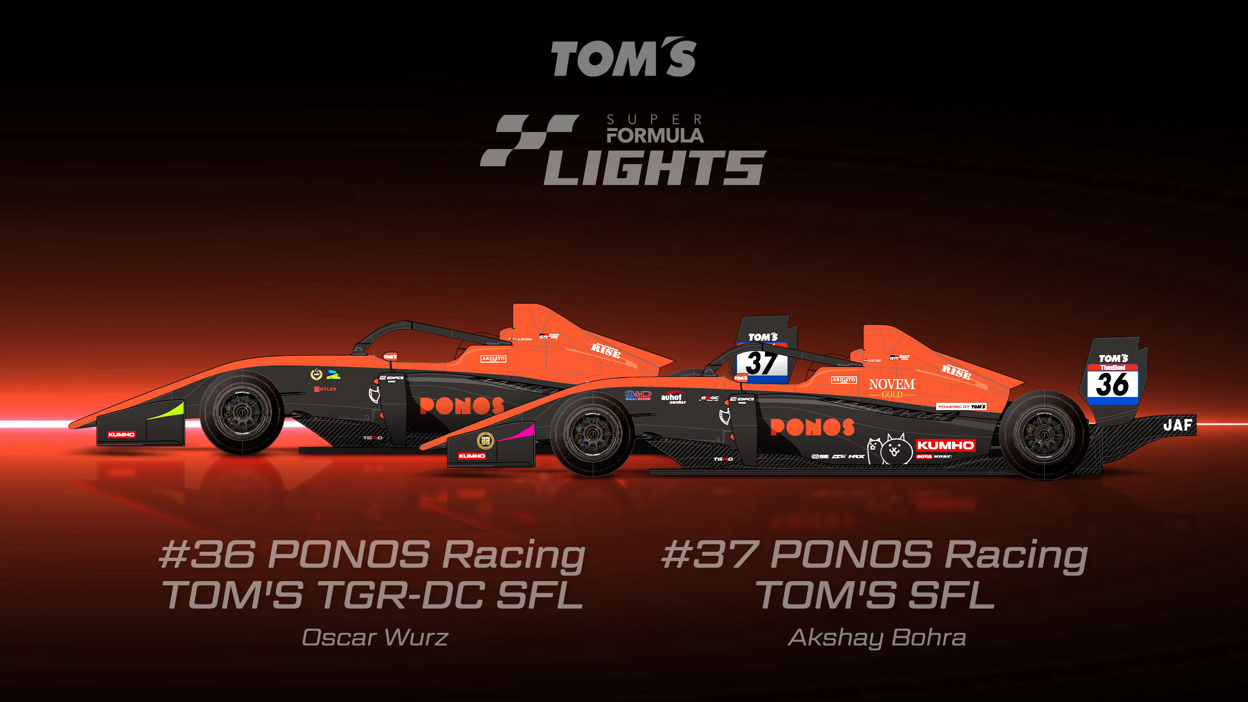 #36 PONOS RacingTOM’S TGR-DC SFL Oscar Wurz #37 PONOS RacingTOM’S SFL Akshay Bohra RACE Schedule & Report SUPER FORMULA LIGHTS 2026 第1/2/3戦レースレポート公開 DRIVER Oscar Wurz オスカー・ブルツ 生年月日 : 2007年12月13日出身地 : 埼玉県血液型 : A型+身長 / 体重:170cm / 62kg Instagram Akshay Bohra アクシャイ・ボーラ 生年月日 : 2006年12月8日出身地 : 埼玉県血液型 : B型身長 / 体重:169cm / 57kg Instagram TEAM DATA チーム名 TOM’S 車両名 #36 PONOS Racing TOM’S TGR-DC SFL#37 PONOS Racing TOM’S SFL カーナンバー 36 / 37 チーム監督 山田 淳 ドライバー オスカー・ブルツ/アクシャイ・ボーラ チーフエンジニア 吉武 聡 PONOS Racing TOM’S TGR-DC SFL / PONOS Racing TOM’S SFL Machine coloring SPONSER